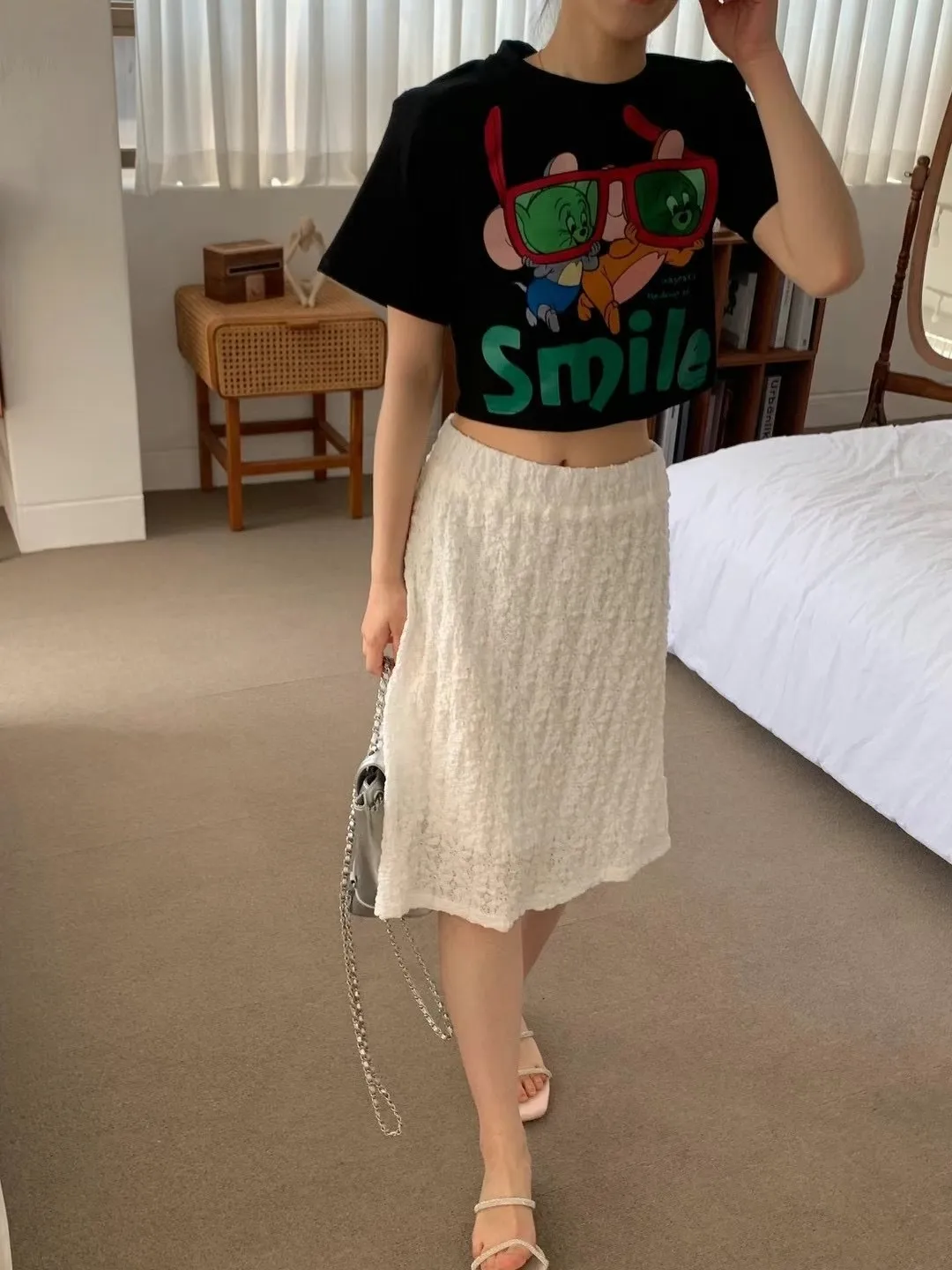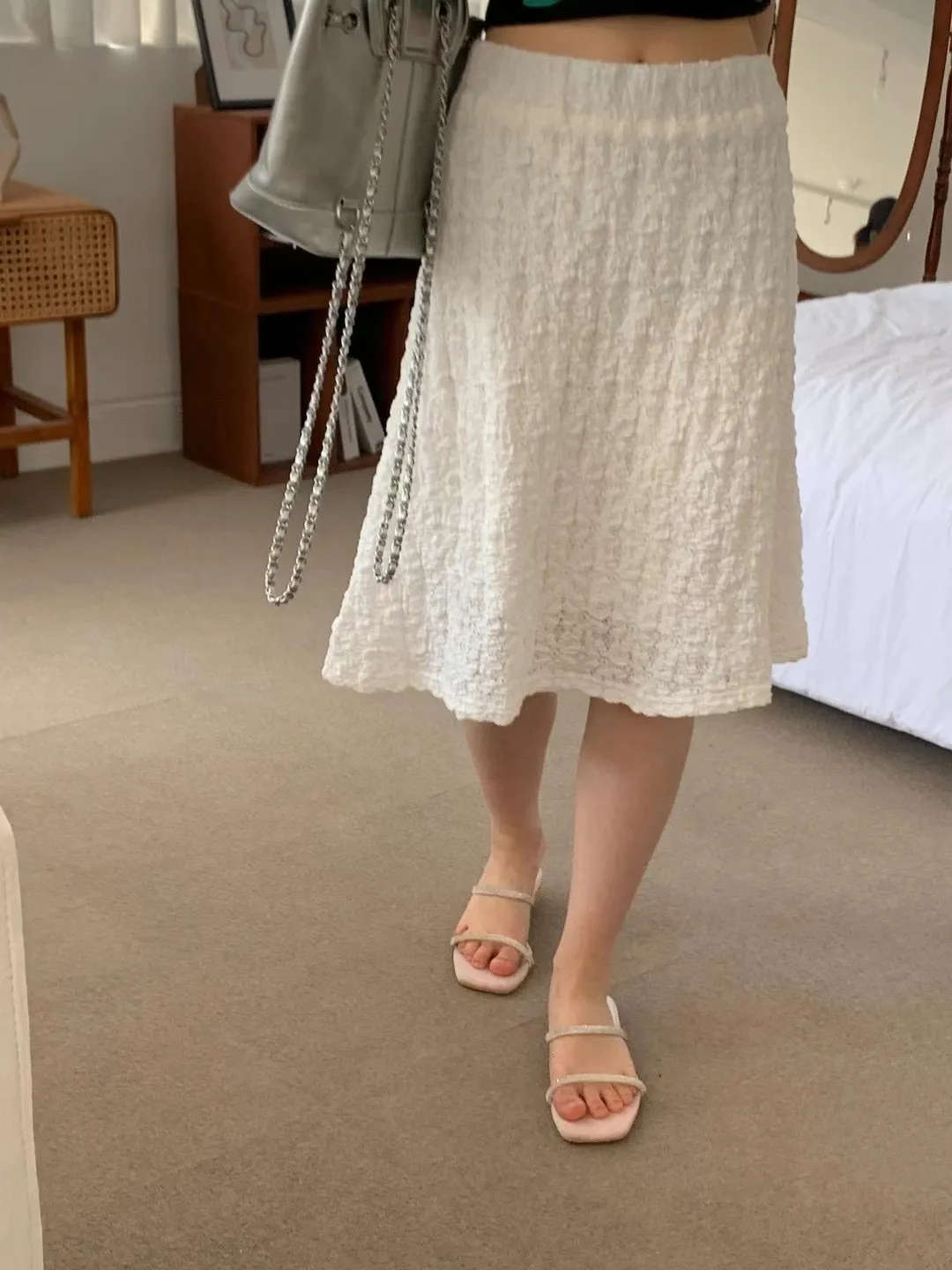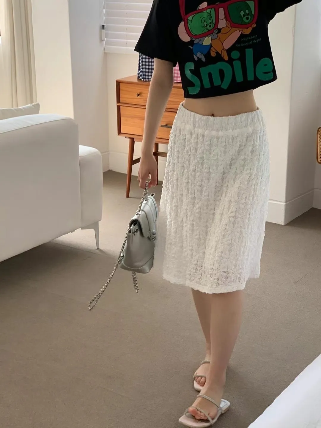 精緻蕾絲設計,內裏襯裙高級舒適面料,腰圍整圈鬆緊設計,整件布料彈性超好~