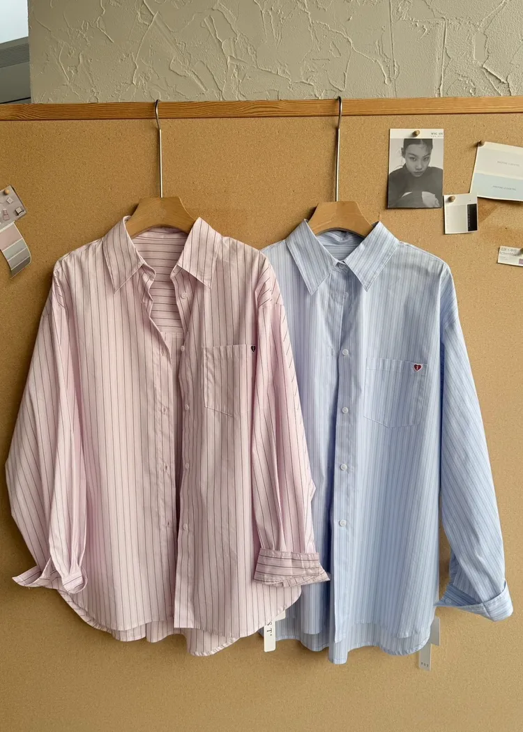 《台灣檔口》小愛心刺繡條紋襯衫