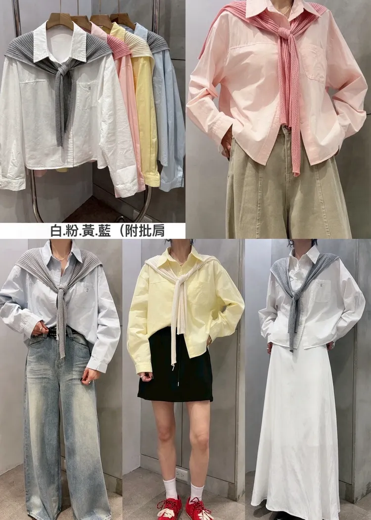 aa237《台灣檔口》1+1短版襯衫附披肩